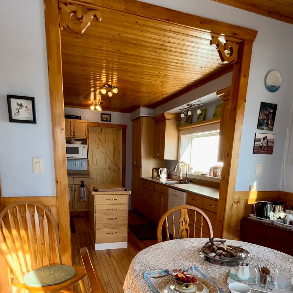 A full breakfast of locally grown and sourced organic food is served in our cozy kitchen.